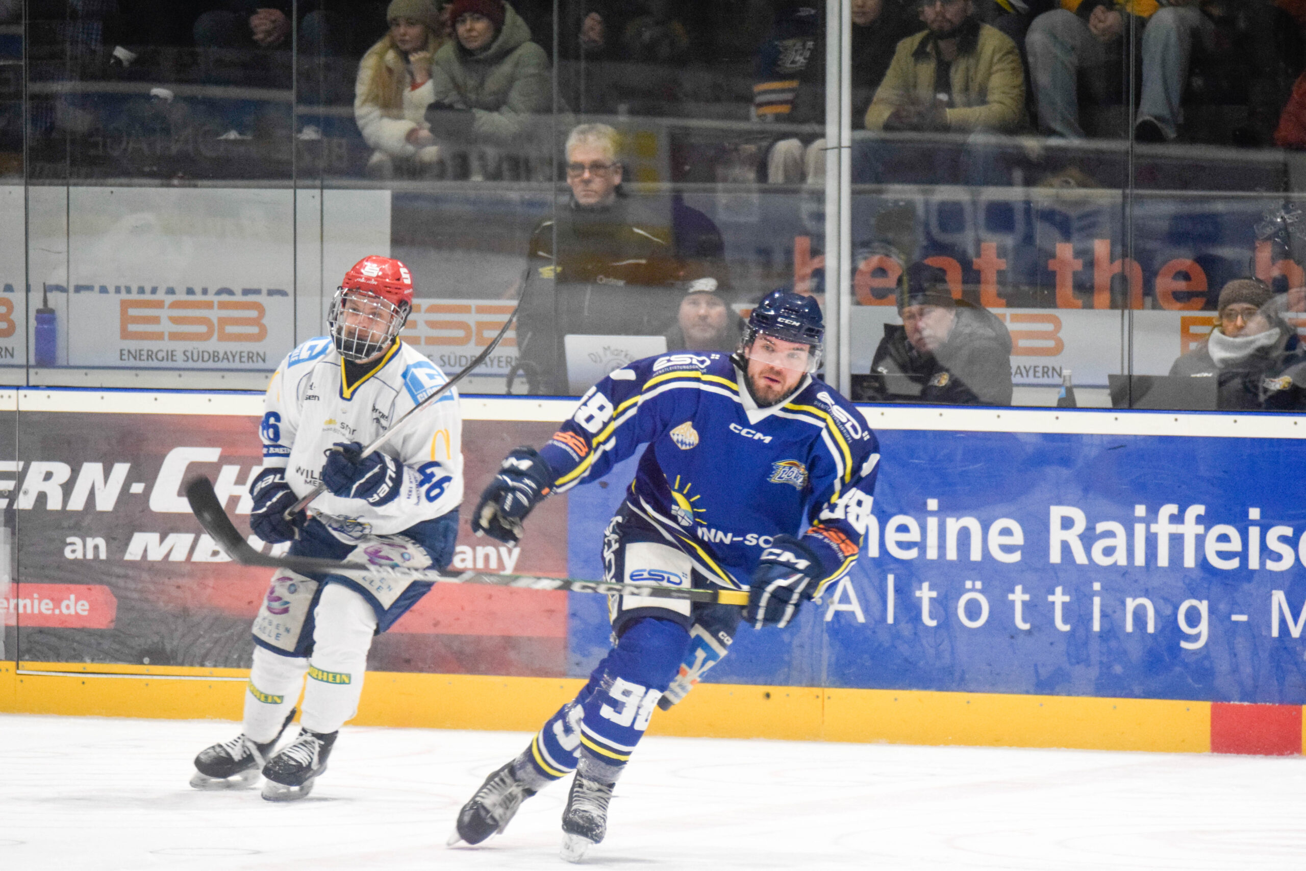 In der Anfangsphase der Begegnung wollten die Gäste aus Unterfranken gleich unter Beweis stellen, warum sie an der Tabellenspitze stehen. Mit der Empfehlung von 138 erzielten Toren reisten die „Mighty Dogs“ nach Waldkraiburg und waren fest entschlossen, diese Statistik weiter auszubauen. Doch nachdem der EHC Waldkraiburg die ersten sechs Minuten souverän verteidigte, ergab sich für die Hausherren die erste größere Möglichkeit. Aus einem Konter heraus jagte Jakub Šrámek in Richtung Schweinfurter Gehäuse, spielte den Pass auf seinen Kapitän – ein Spielzug, den man offenbar schon häufig im Training geübt hatte – und Nico Vogl ließ sich nicht zweimal bitten. Aus kürzester Distanz brachte er den Puck zur viel umjubelten Führung im Tor unter.