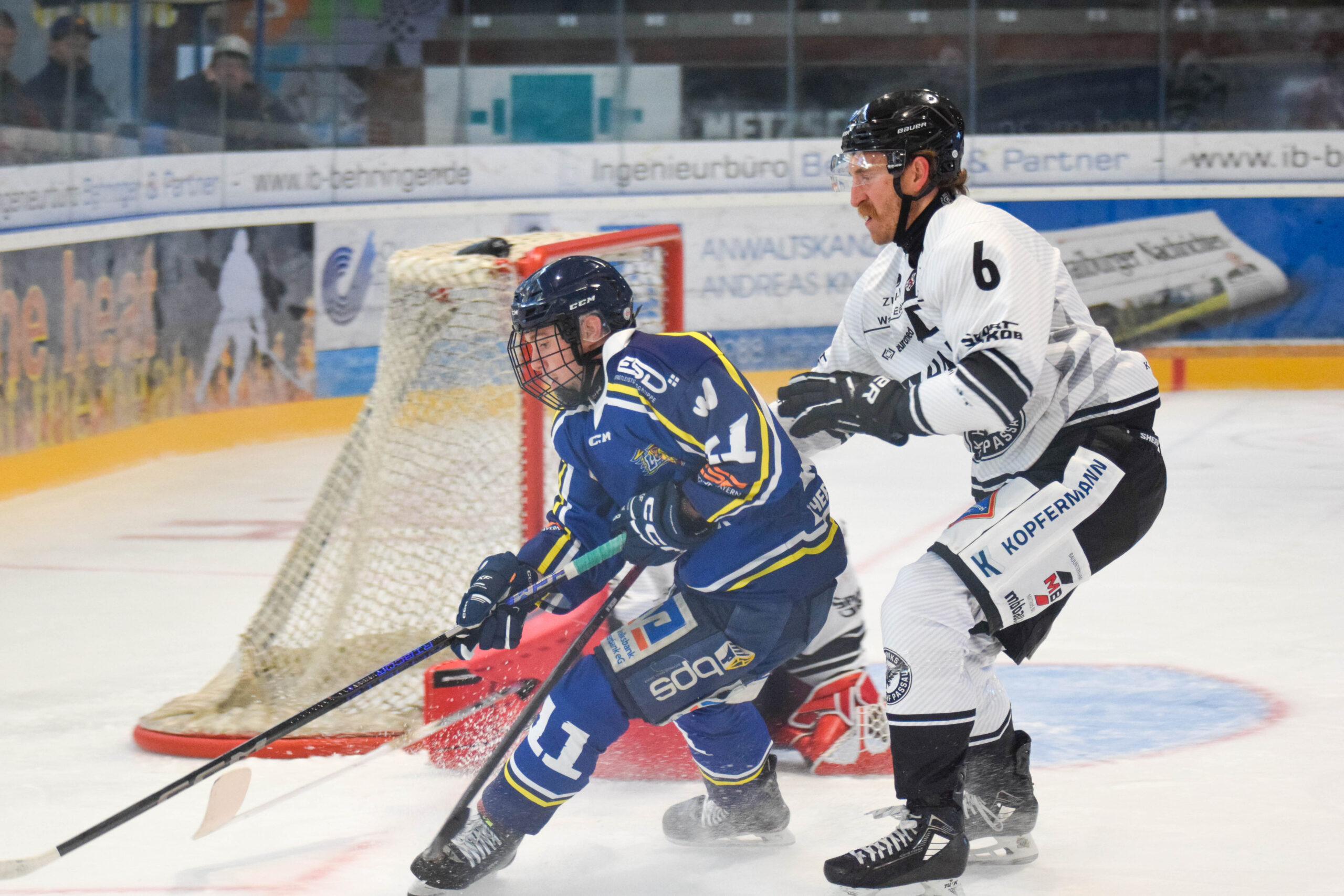Doch wer dachte, die Partie würde damit den erwarteten Verlauf eines Oberliga-gegen-Bayernliga-Duells nehmen, sah sich getäuscht. Ab dem zweiten Drittel steigerten sich die Löwen merklich. Sie mussten zunächst eine doppelte Unterzahl überstehen, warfen sich aber in die Schüsse und hielten die Black Hawks vom dritten Treffer ab. Im Anschluss übernahm Waldkraiburg phasenweise selbst die Kontrolle und spielte sich Chancen heraus. Neuzugang Andris Džeriņš sorgte mit einem Pfostenschuss für den lautesten Knall des Abends – das Gestänge vibrierte wohl noch Minuten später. Auch zwei unglückliche Alleingänge verpassten nur knapp den Anschluss.